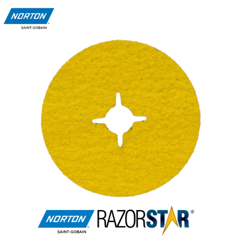 Norton Razorstar F990S Fibre Discs 180mm x 22. Nortons flagship ceramic engineered abrasive is designed for grinding steel. 36 grit to cut through the hardest coatings we come across in the floor sanding trade. With a long service life due to its 100% ceramic content, Razorstar give greater economy across the service life compared to other ceramics. Razorstar grains are nano engineered into micro triangles to give an extremely even scratch pattern.
